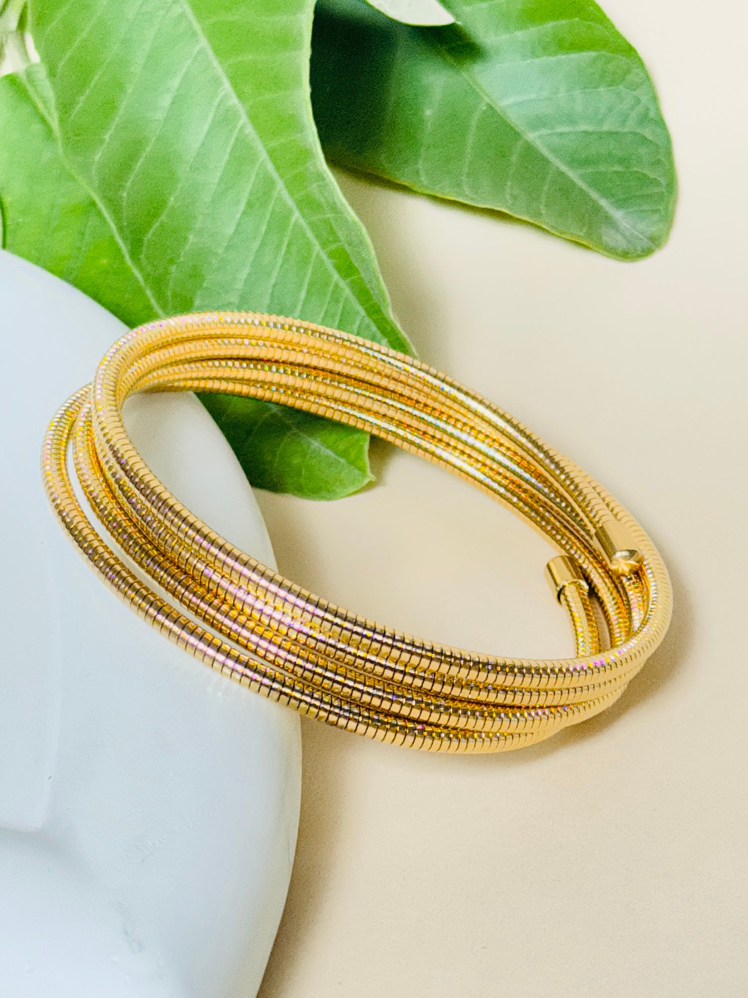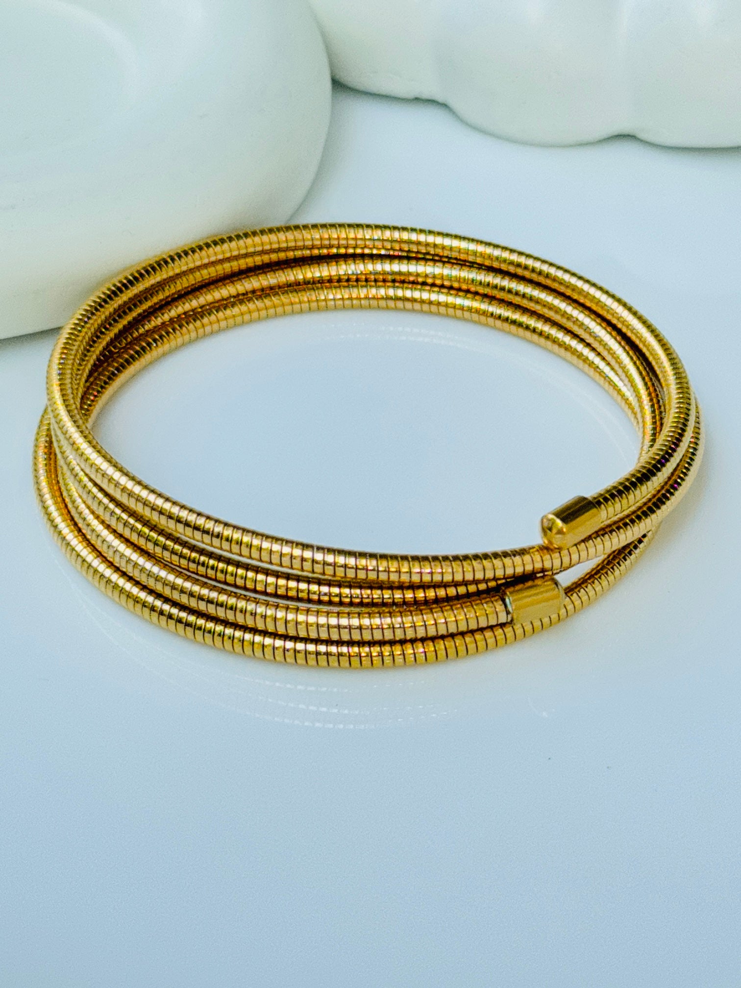 Indulge in the ultimate luxury with our 18K gold plated anti-tarnish bracelet. Crafted with premium quality, it boasts a four-layer adjustable round design that is perfect for daily use and all occasions. Plus, its water-resistant feature ensures long-lasting wear. Elevate your style with this sophisticated and exclusive piece.