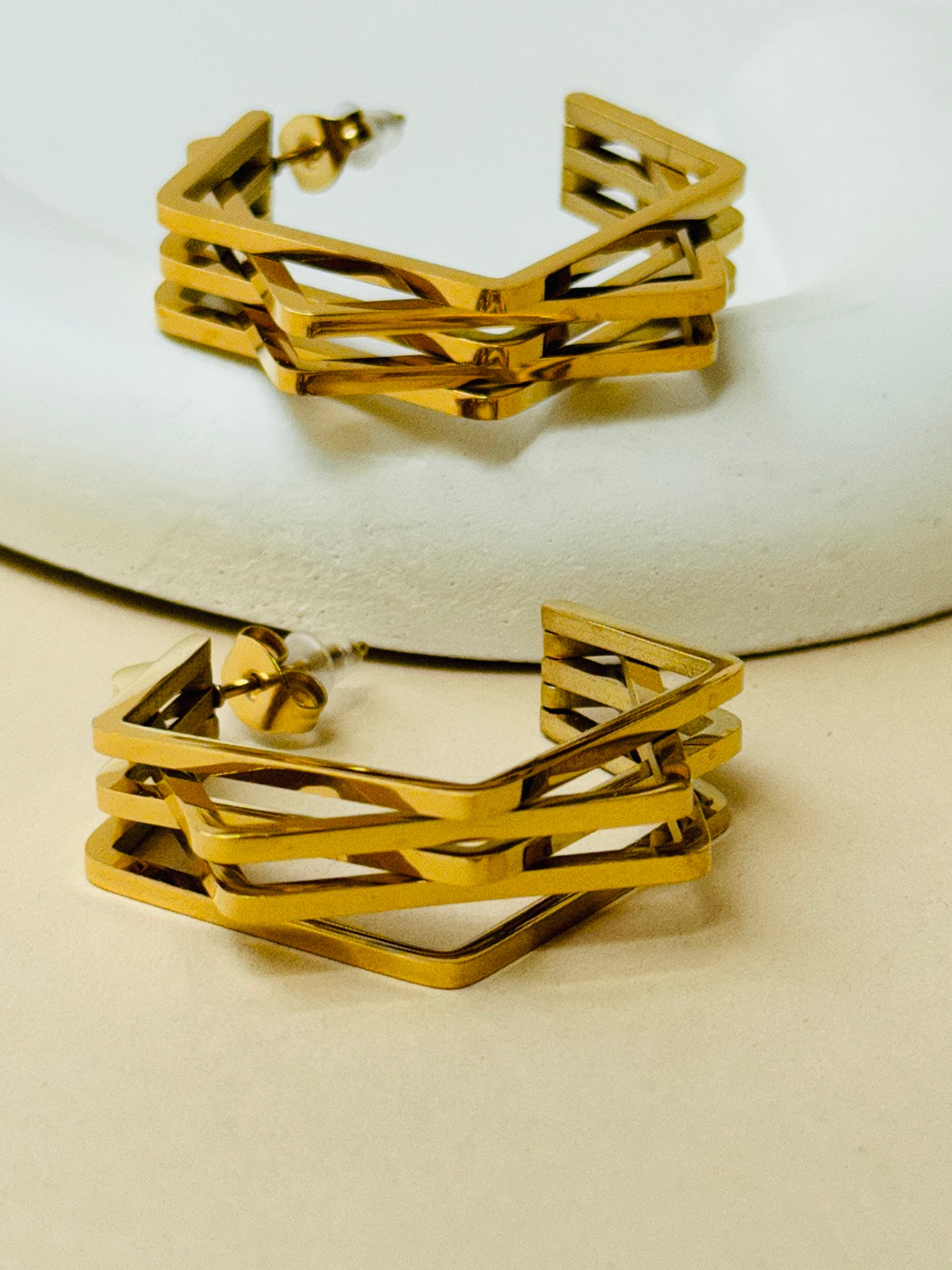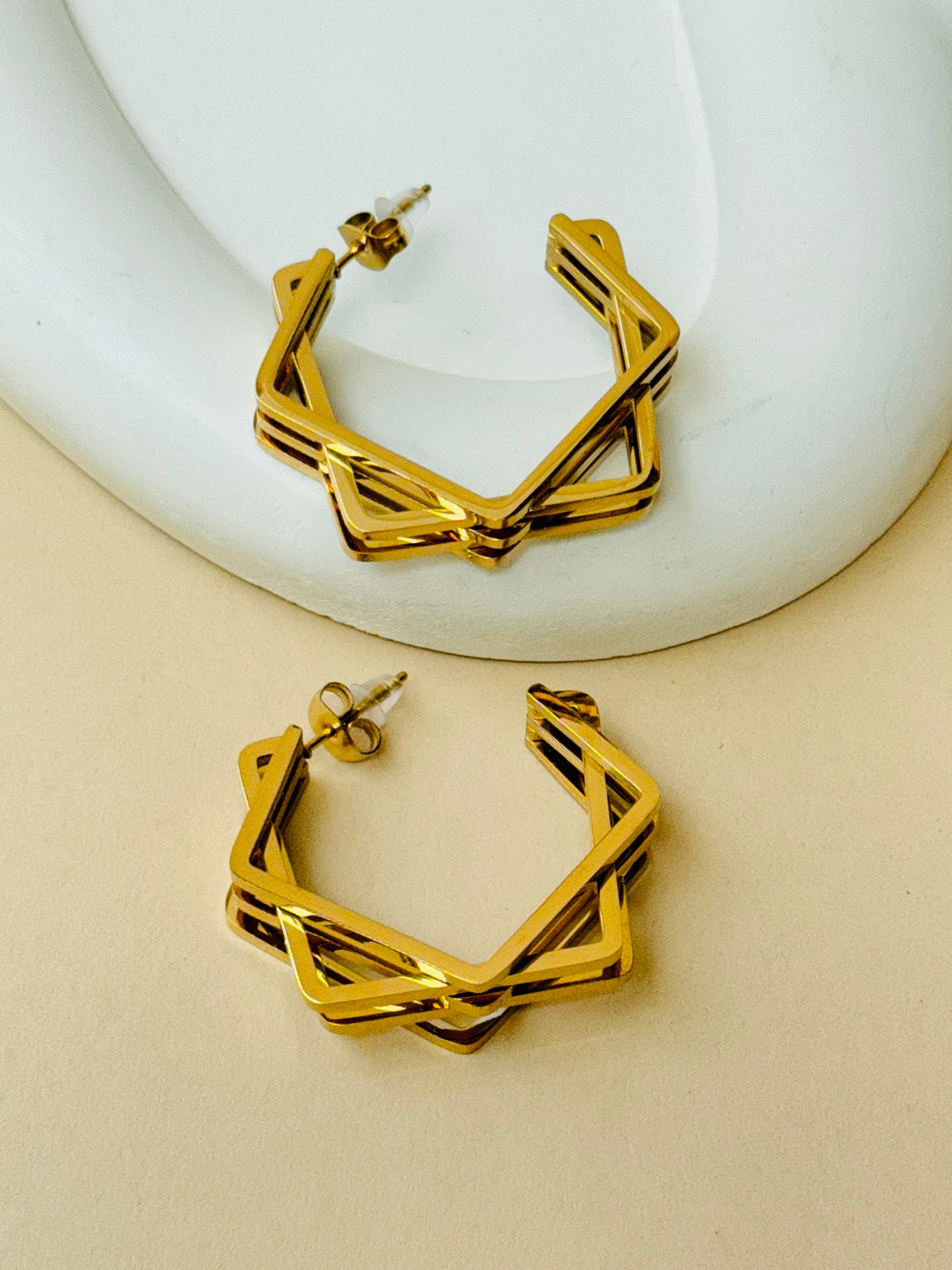 Elevate your style with our exquisite 18k anti-tarnish micro gold plated earrings. Perfect for any occasion, these water-resistant earrings are made of premium stainless steel with an elegant design. Make a statement with luxury and sophistication.