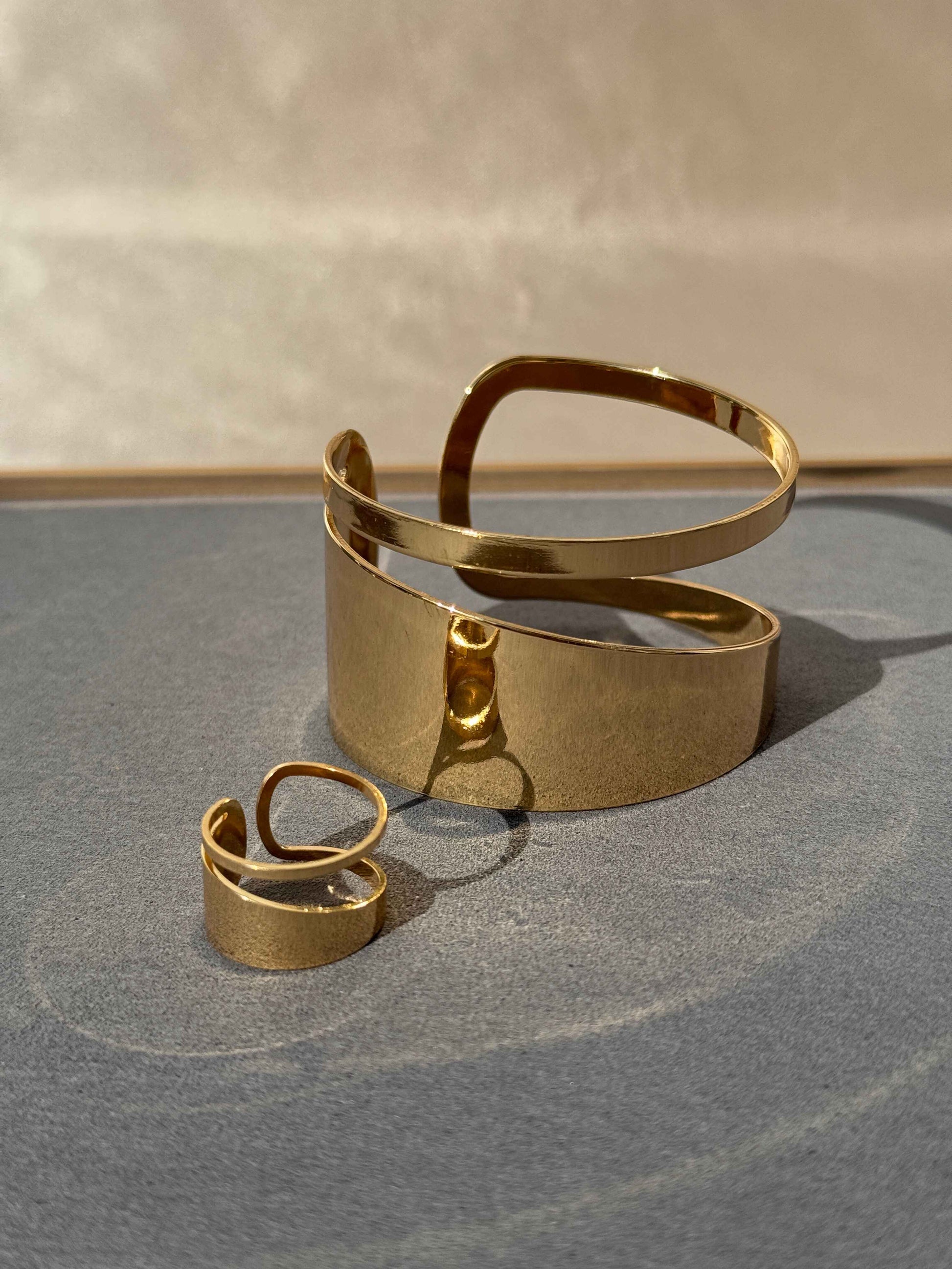 Elevate your style with the BOLD 18k Adjustable Bracelet & Ring Combo, a luxurious and exclusive piece by TKS. Crafted with premium stainless steel and anti-tarnish gold plating, it's water resistant and hypoallergenic for worry-free daily wear. Its adjustable size and sweat-free design add a touch of elegance to any outfit.