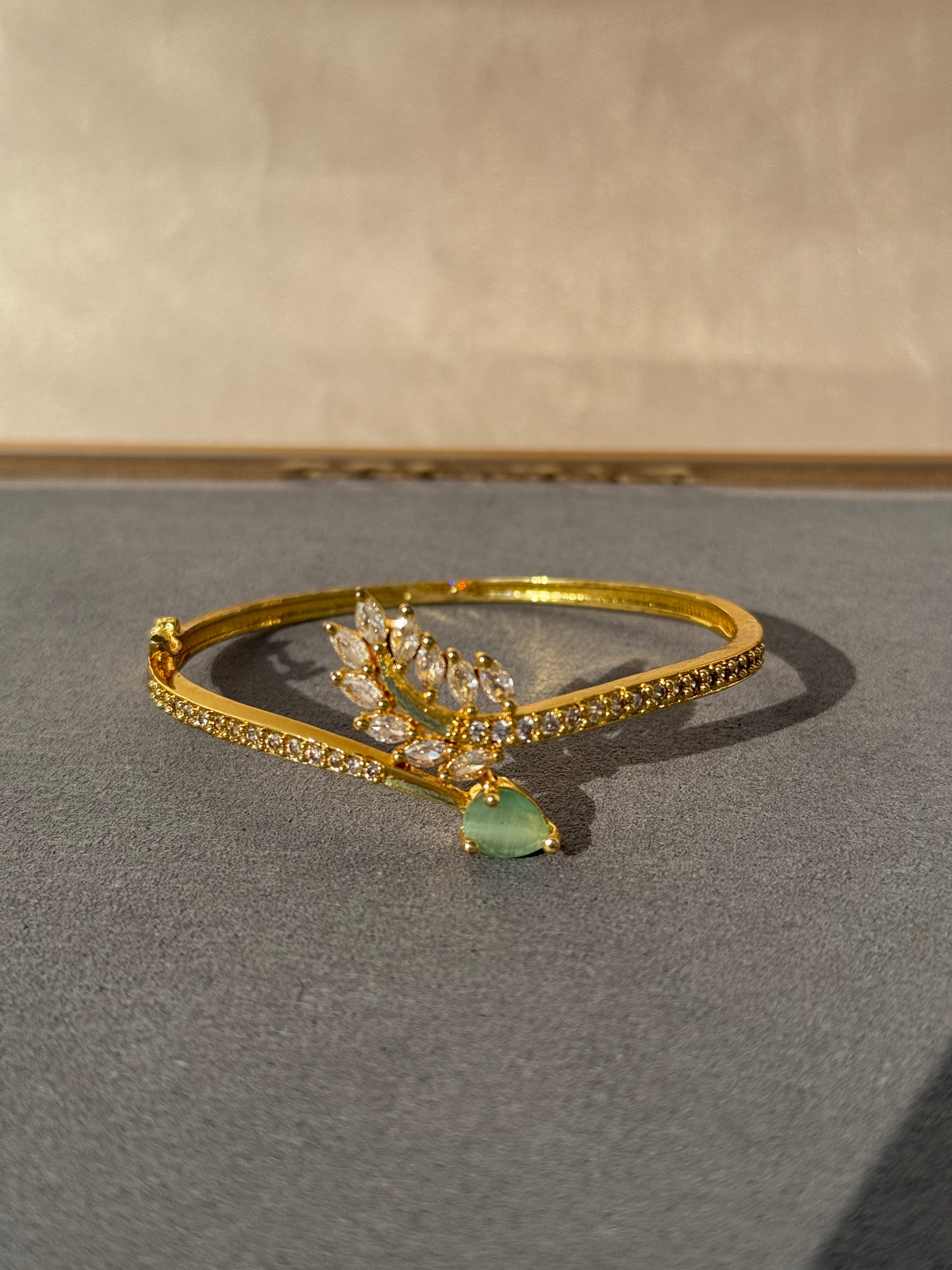 Indulge in timeless elegance with the gold cubic zirconia bracelet. Its premium micro gold polish adds a touch of luxury while its free size design guarantees a comfortable fit for any occasion, be it casual or formal. Each cubic zirconia stone is carefully placed for a sophisticated and refined look, making this the ultimate accessory to elevate any ensemble.