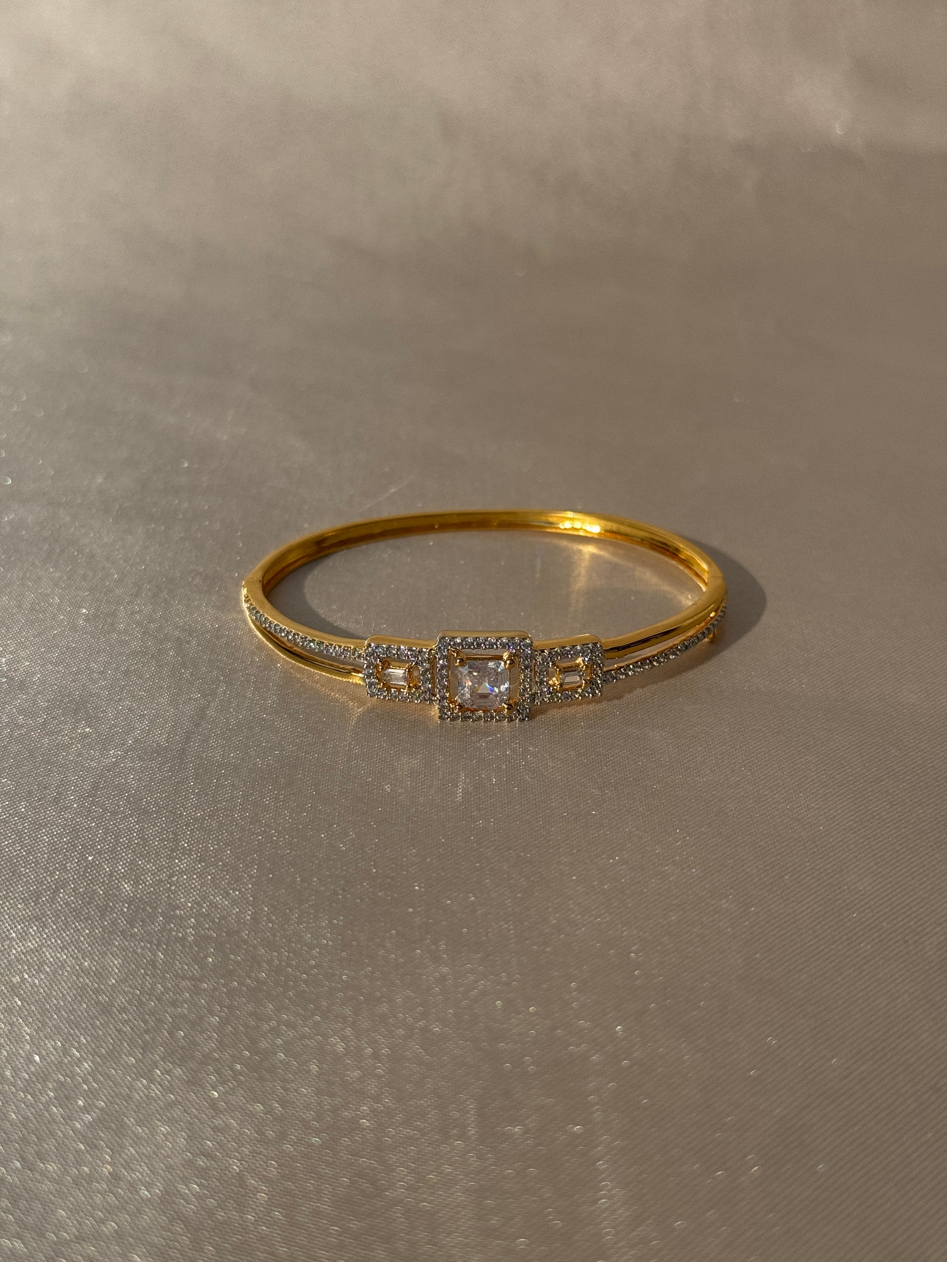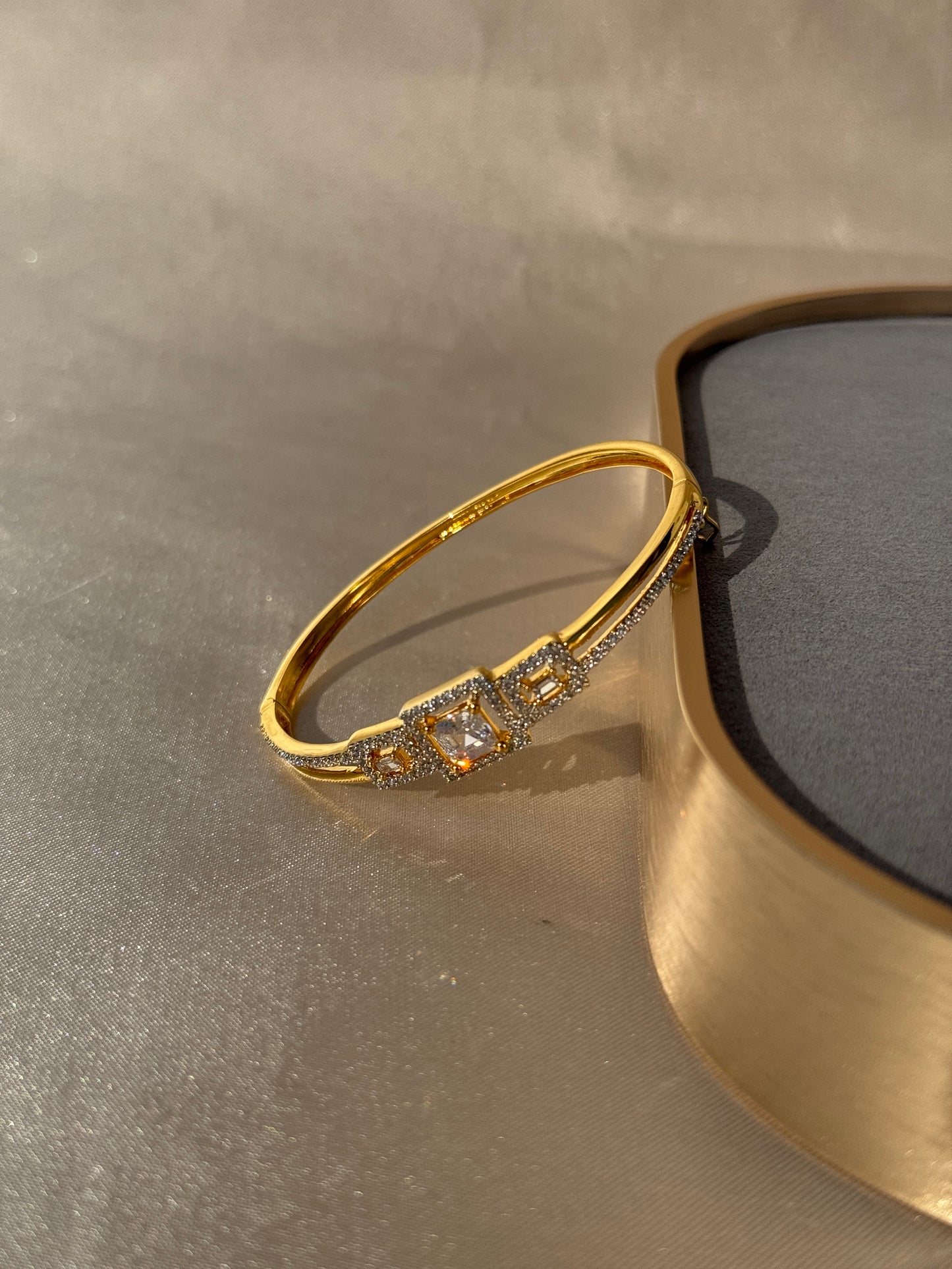 Indulge in timeless elegance with the gold cubic zirconia bracelet. Its premium micro gold polish adds a touch of luxury while its free size design guarantees a comfortable fit for any occasion, be it casual or formal. Each cubic zirconia stone is carefully placed for a sophisticated and refined look, making this the ultimate accessory to elevate any ensemble.