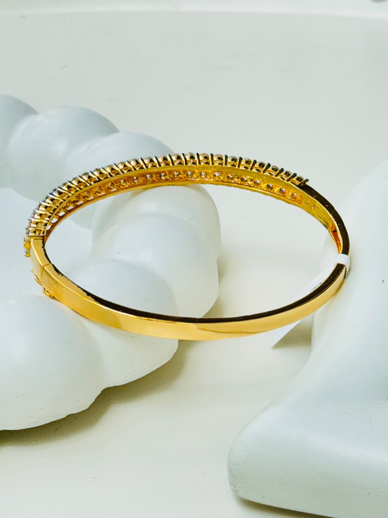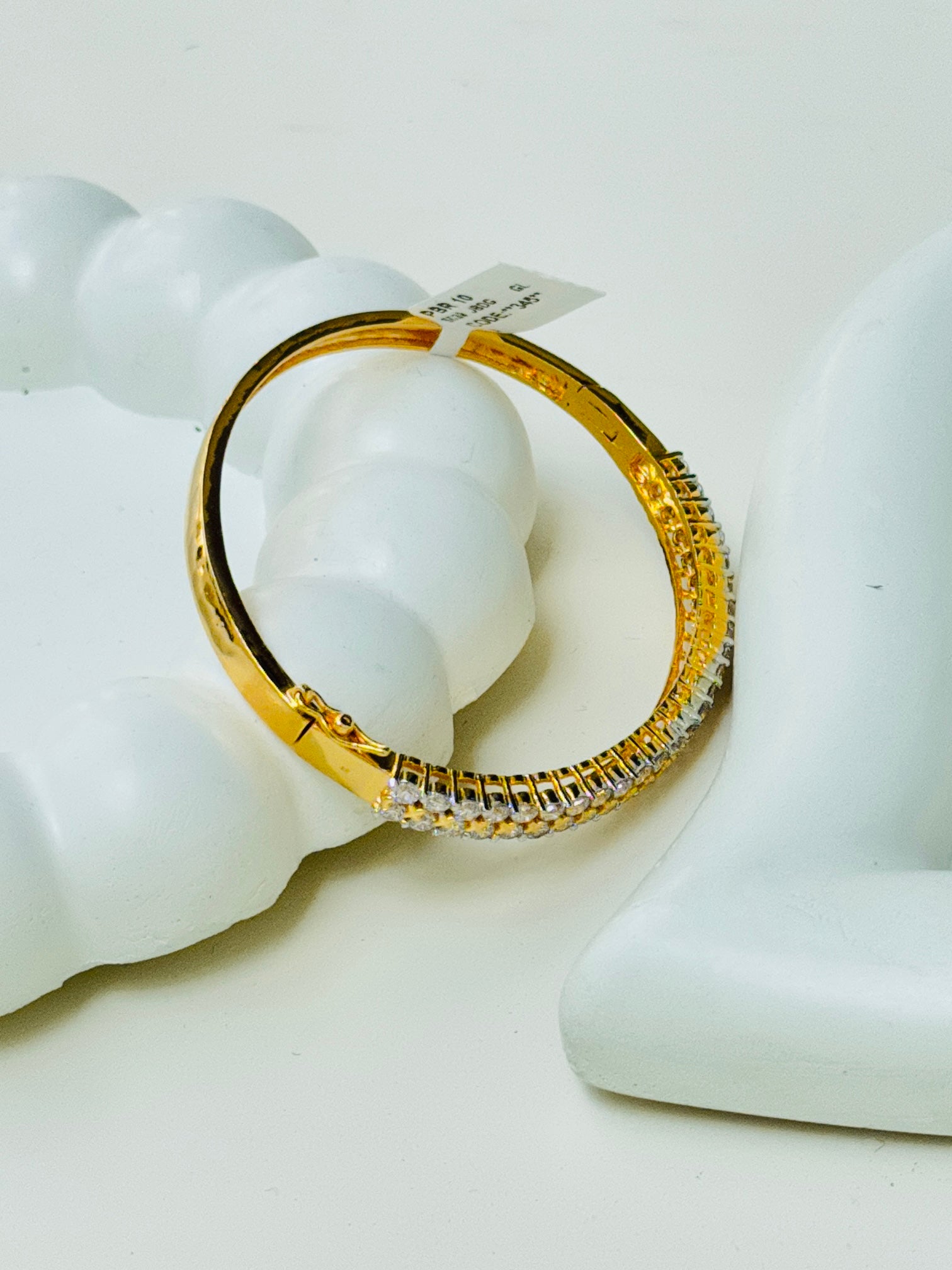 Indulge in timeless elegance with the gold cubic zirconia bracelet. Its premium micro gold polish adds a touch of luxury while its free size design guarantees a comfortable fit for any occasion, be it casual or formal. Each cubic zirconia stone is carefully placed for a sophisticated and refined look, making this the ultimate accessory to elevate any ensemble.