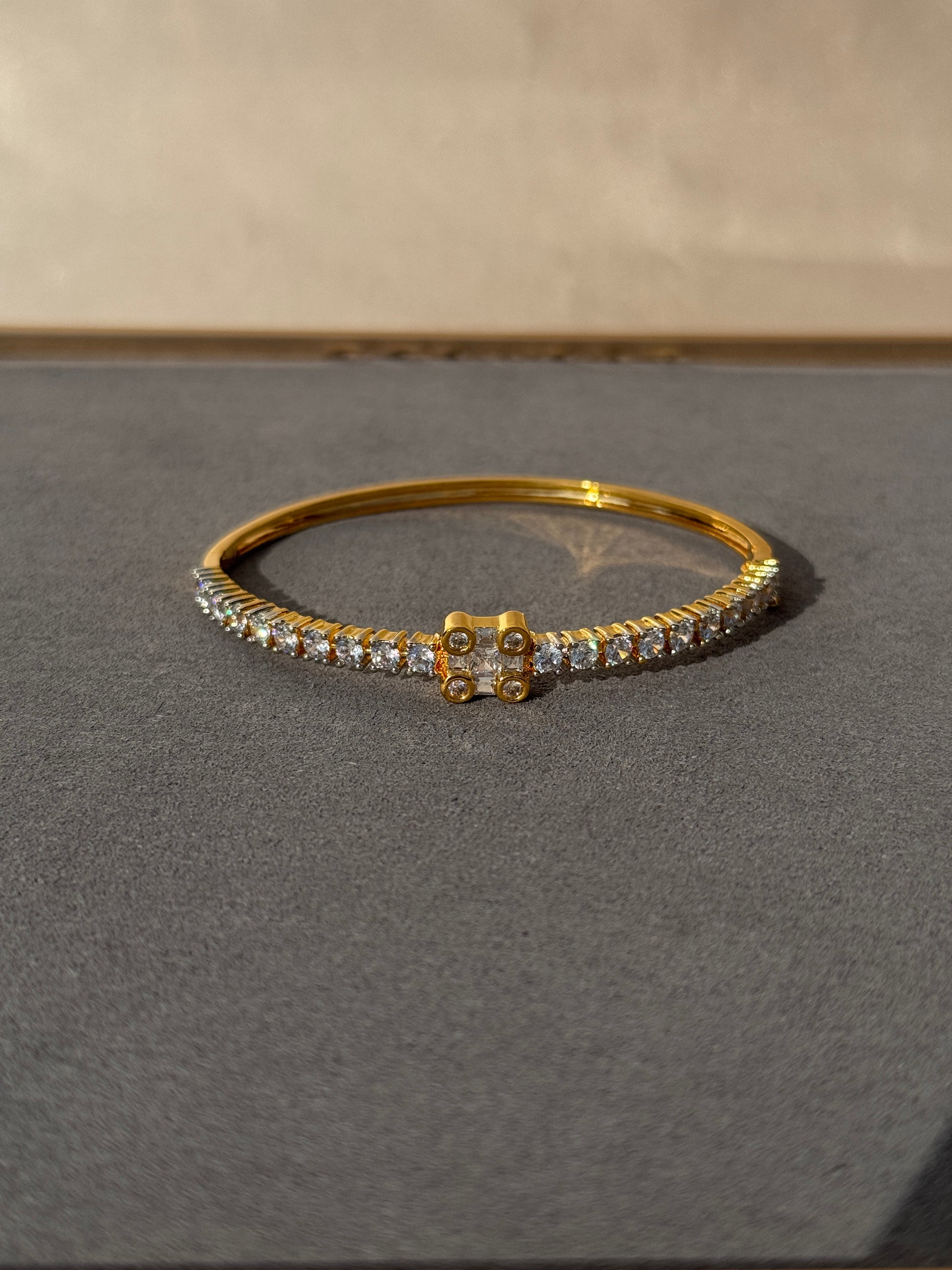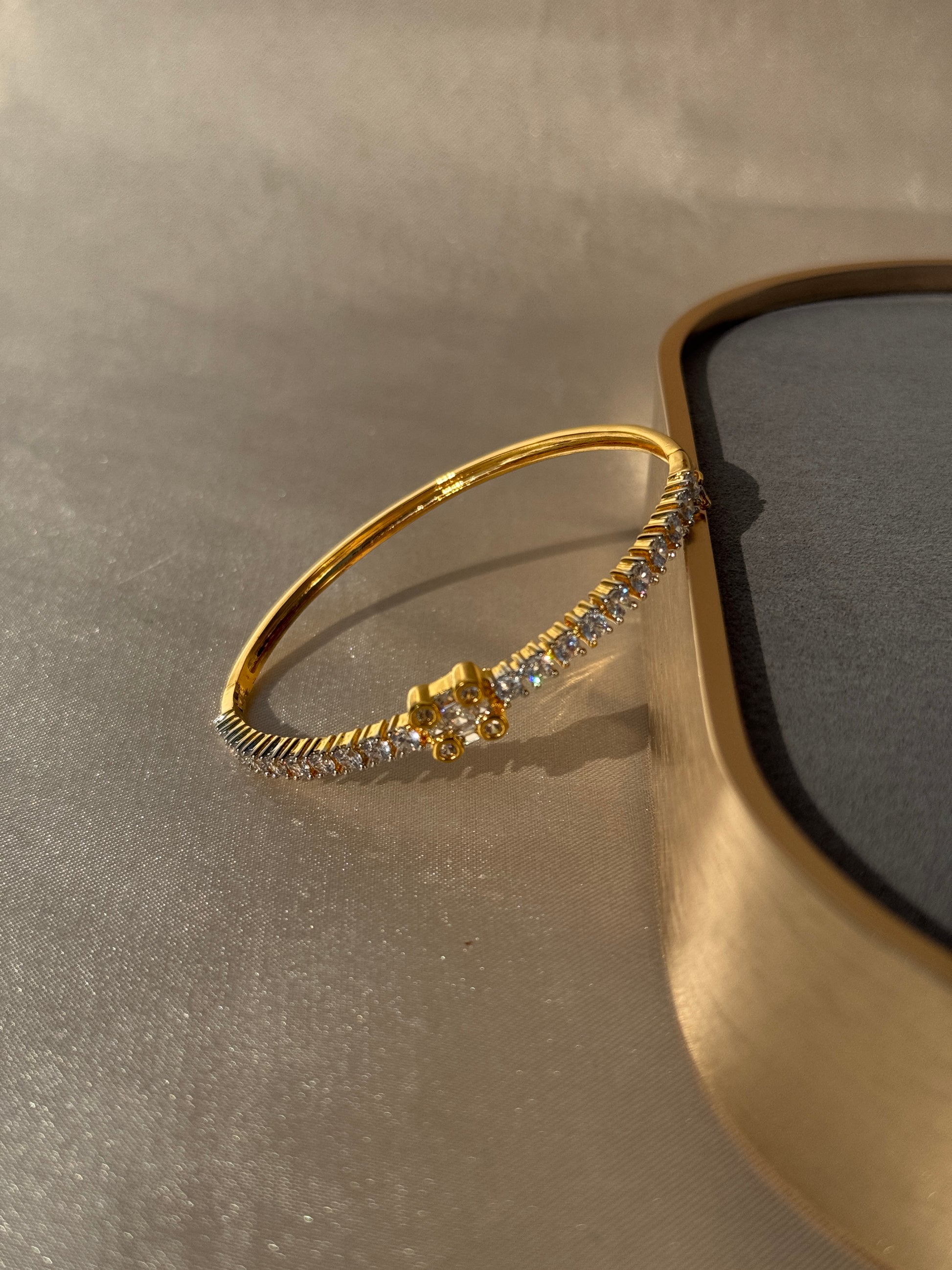 Indulge in timeless elegance with the gold cubic zirconia bracelet. Its premium micro gold polish adds a touch of luxury while its free size design guarantees a comfortable fit for any occasion, be it casual or formal. Each cubic zirconia stone is carefully placed for a sophisticated and refined look, making this the ultimate accessory to elevate any ensemble.