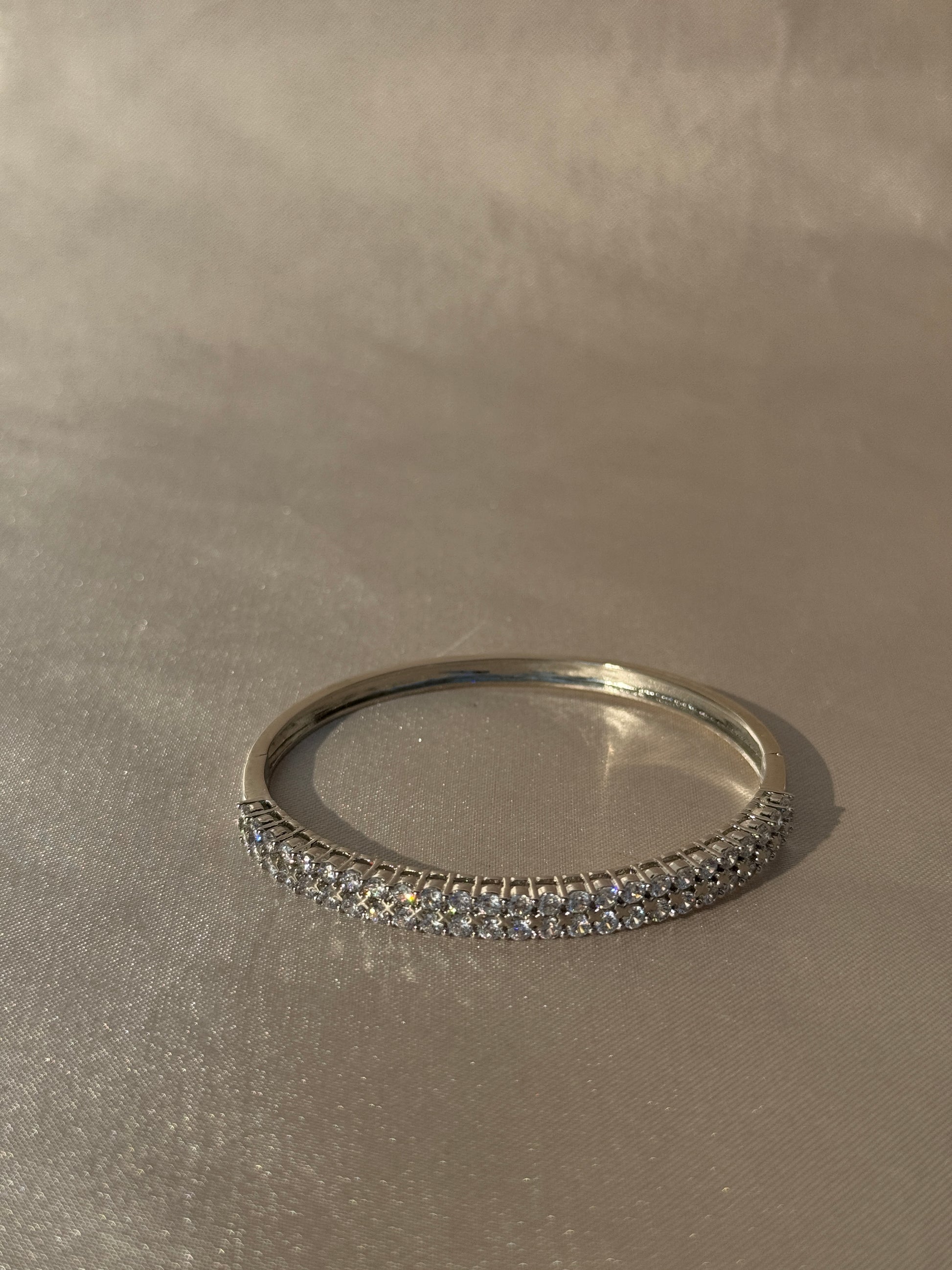 Indulge in timeless elegance with the Silver cubic zirconia bracelet. Its premium sterling silver polish adds a touch of luxury while its free size design guarantees a comfortable fit for any occasion, be it casual or formal. Each cubic zirconia stone is carefully placed for a sophisticated and refined look, making this the ultimate accessory to elevate any ensemble.