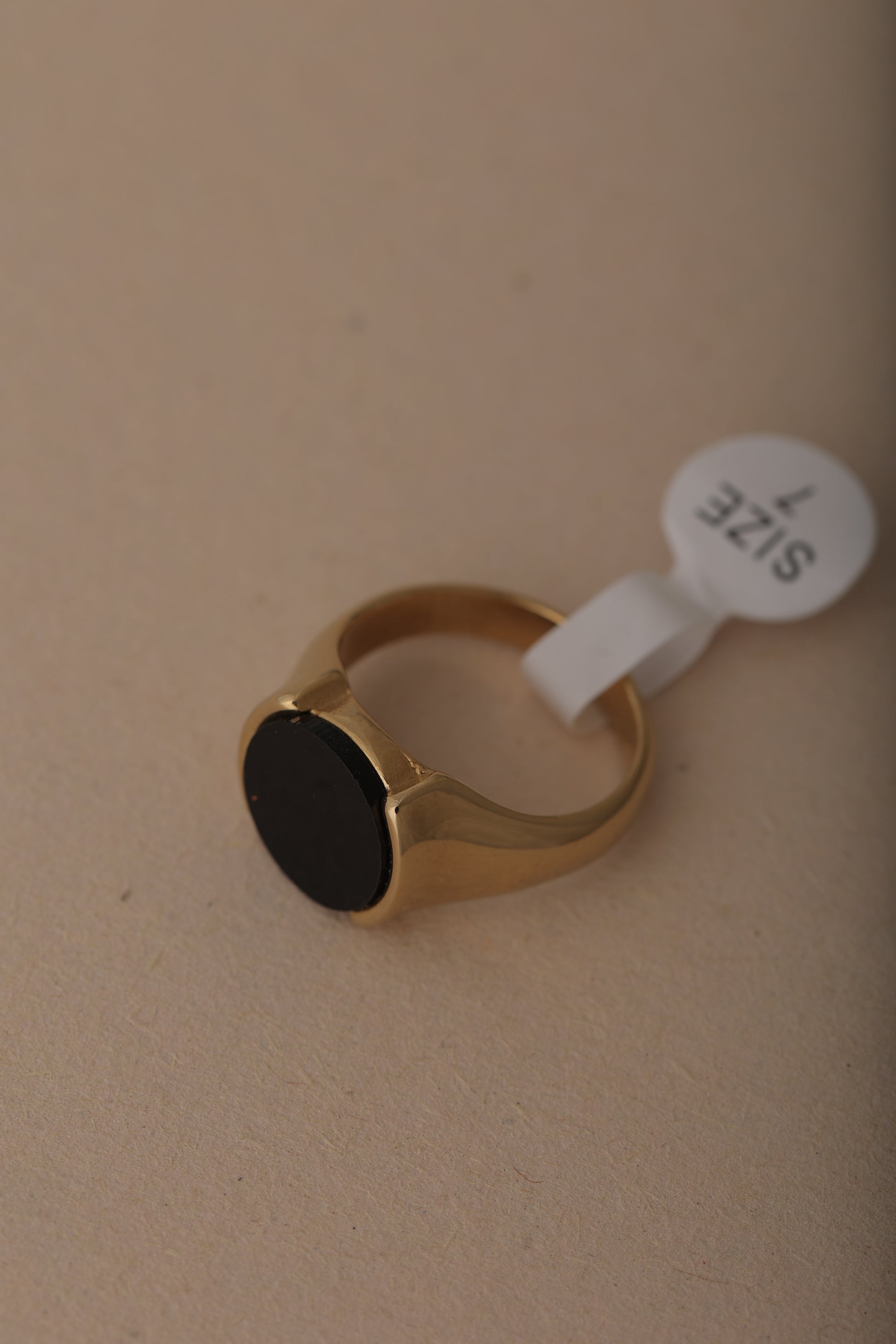 DARO BLACK STONE SIGNET MEN'S GOLD PLATED RING
