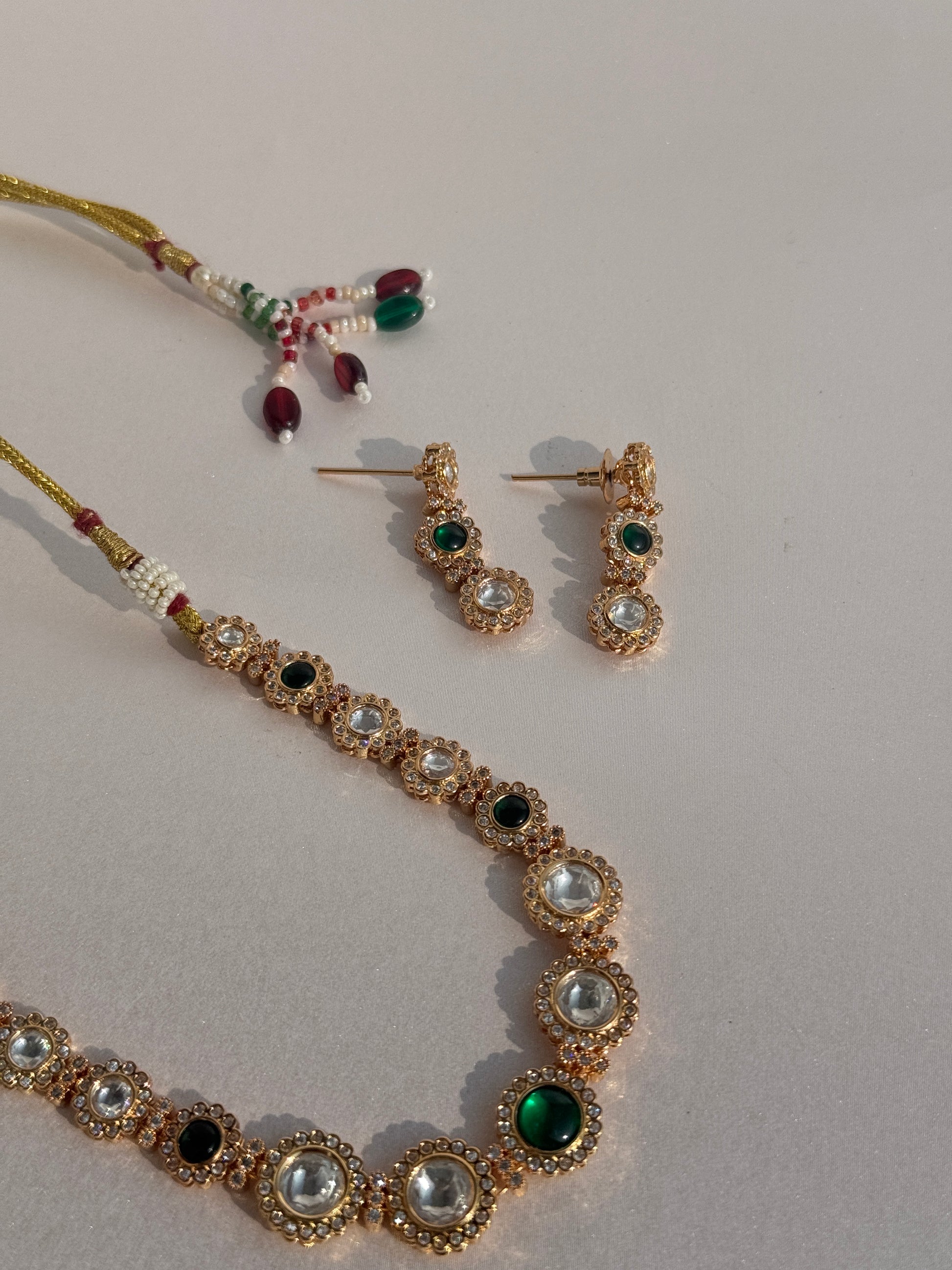 Step into the world of luxury and tradition with our Antique Gold Plated Emerald Choker. Its elegant and traditional design celebrates the uniqueness of Indian culture. Made of premium materials, this choker is the perfect accessory for any occasion. Elevate your style with the sophistication of our choker.