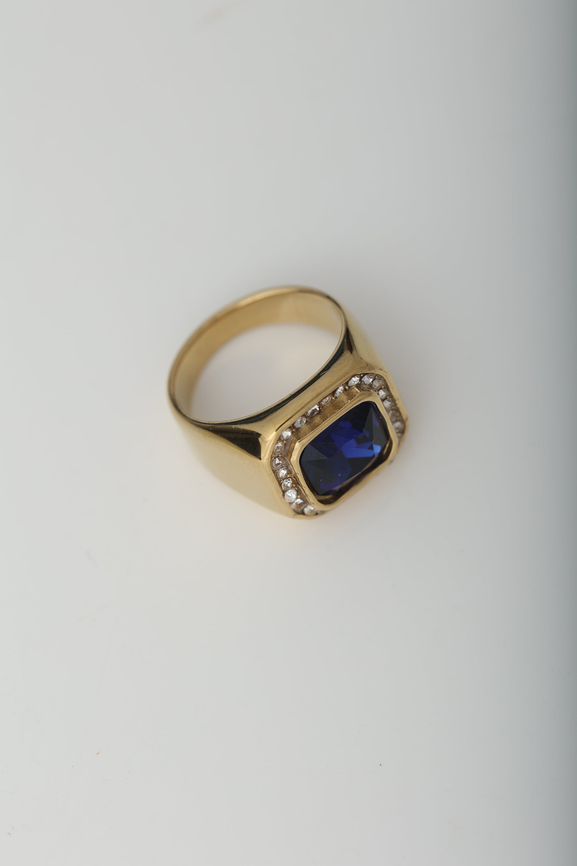 MEN'S BLUE SAPPHIRE GOLD PLATED RING