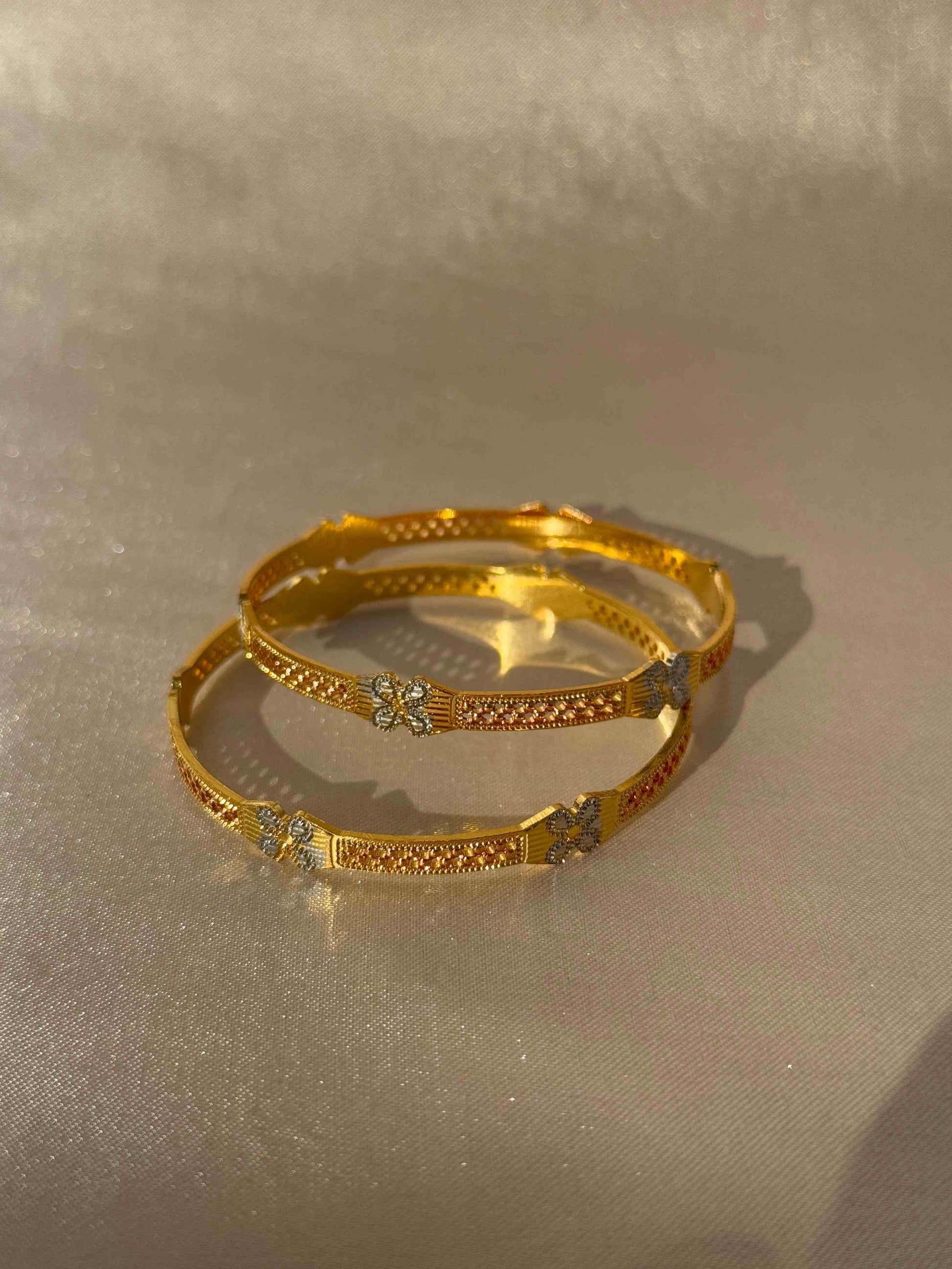 Experience the elegance and durability of our Two Tonne Micro Gold Plated Anti Tarnish Bangles. Designed by TKS, these bangles are water resistant and perfect for daily wear. Made with premium quality materials, they add a touch of luxury to any occasion. Say goodbye to tarnishing and hello to an elegant and timeless look.