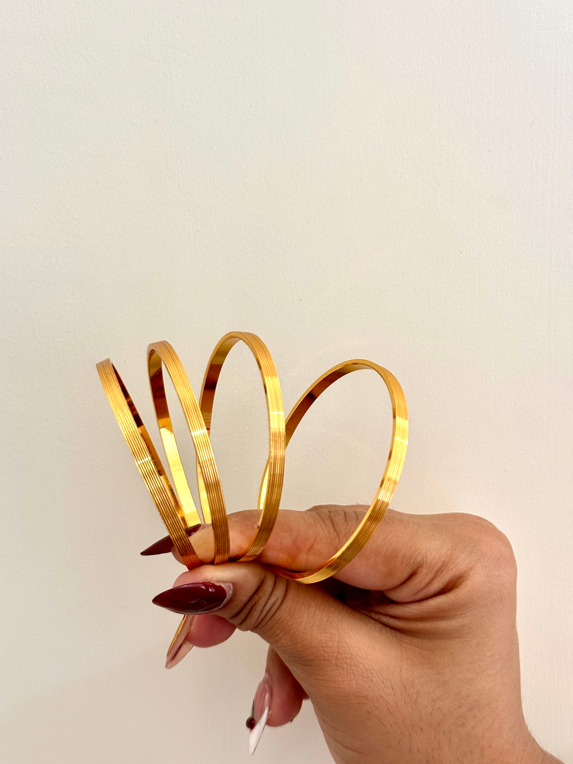 Experience the elegance and durability of our Micro Gold Plated Anti Tarnish Bangles. Designed by TKS, these bangles are water resistant and perfect for daily wear. Made with premium quality materials, they add a touch of luxury to any occasion. Say goodbye to tarnishing and hello to an elegant and timeless look.