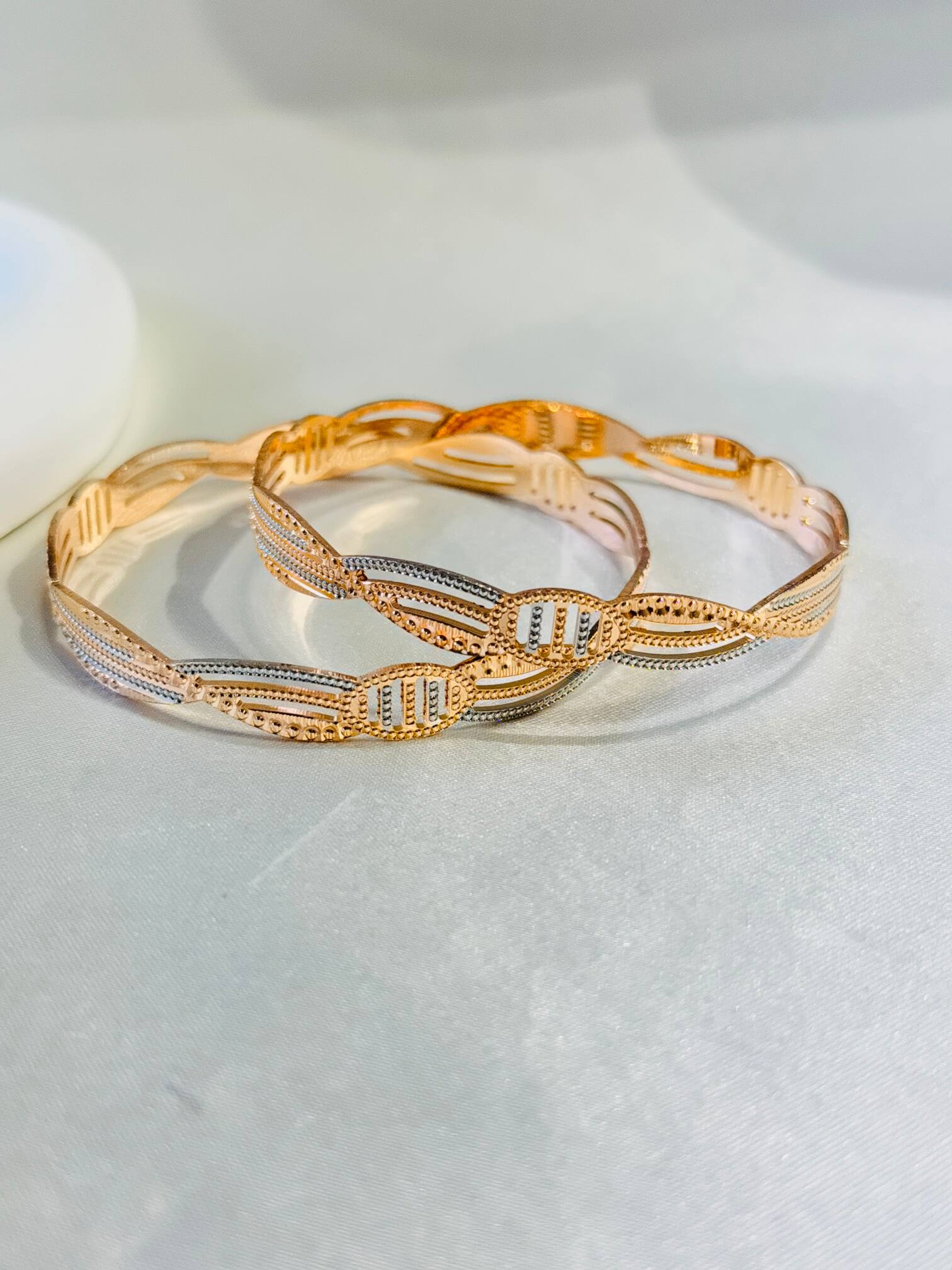 Indulge in luxurious, rose gold plated bangles that are perfect for daily wear. With anti-tarnish and water-resistant properties, these bangles are allergy-free and available in all sizes. Elevate your style with these lightweight, premium quality bangles that are perfect for any occasion. Experience the beauty and durability of these bangles for yourself.